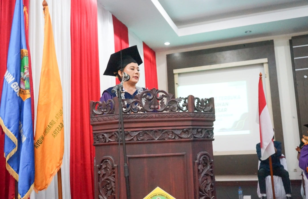 IAHN Gde Pudja Mataram marked a significant academic milestone by holding the Open Senate Session for the Conferment of Professorship 2025 on Tuesday, December 24, 2025, at the 3rd Floor Meeting Hall of the IAHN Gde Pudja Mataram Rectorate Building. The event was attended by the Director of Hindu Education, Directorate General of Hindu Community Guidance, Ministry of Religious Affairs of the Republic of Indonesia, Prof. Dr. I Ketut Sudarsana, S.Ag., M.Pd.H., representing Director General of Hindu Community Guidance, Ministry of Religious Affairs of the Republic of Indonesia, along with distinguished guests and members of the academic community of IAHN Gde Pudja Mataram.