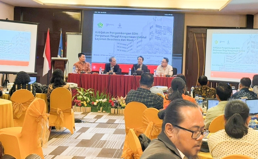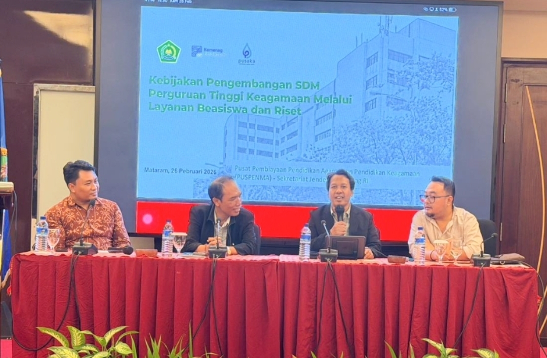 Mataram — Institut Agama Hindu Negeri (IAHN) Gde Pudja Mataram hosted a Sharing Session organized by the Center for Religious Education Financing (Puspenma), Secretariat General of the Ministry of Religious Affairs of the Republic of Indonesia, on Thursday, February 26, 2026, at Golden Palace Hotel. The session highlighted policies on human resource development for religious higher education through scholarship services and research funding schemes.