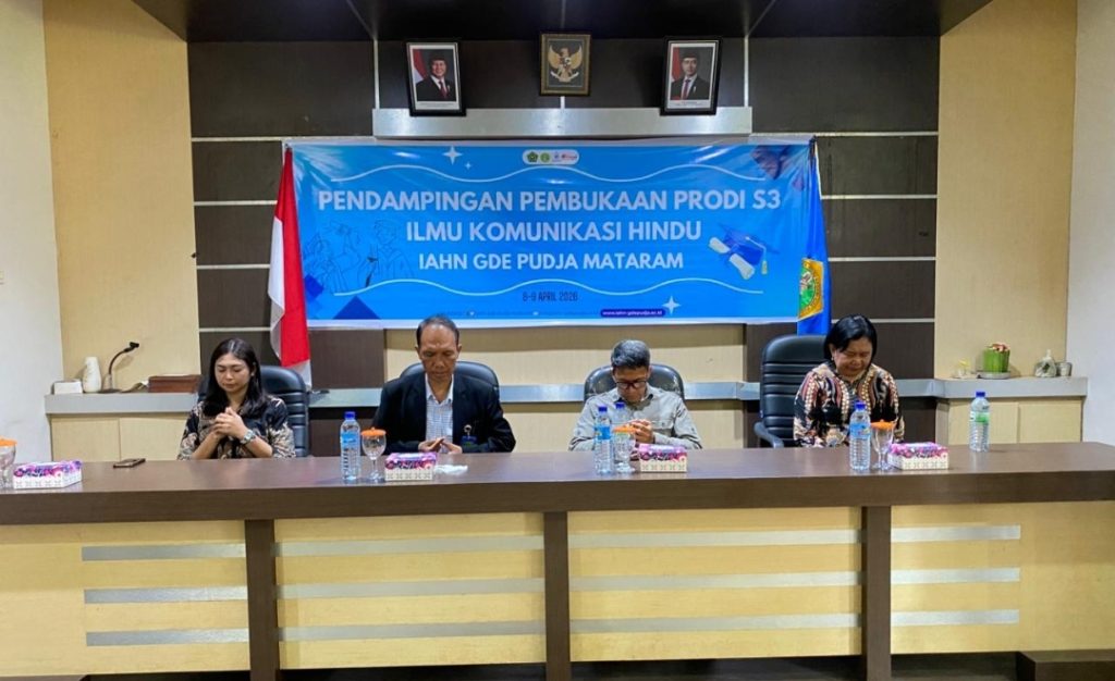 Mataram, 8 April 2026 — IAHN Gde Pudja Mataram kembali menunjukkan komitmennya sebagai perguruan tinggi Hindu yang progresif dan visioner melalui penyelenggaraan kegiatan Pendampingan Pembukaan Program Studi S3 Ilmu Komunikasi Hindu. Kegiatan ini dilaksanakan pada Rabu, 8 April 2026, bertempat di Ruang Pertemuan Lantai 2 Gedung Rektorat, dan berlangsung dalam suasana akademik yang dinamis, kondusif, serta penuh semangat kolaborasi. Acara ini dihadiri oleh jajaran pimpinan di lingkungan IAHN Gde Pudja Mataram, seluruh Guru Besar, Tim Penyusun Proposal Prodi S3 Ilmu Komunikasi Hindu, serta Tim Akselerasi Akademik. Kehadiran para akademisi lintas unit ini mencerminkan keseriusan dan kesiapan institusi dalam mengembangkan program doktoral yang unggul dan relevan dengan kebutuhan zaman.