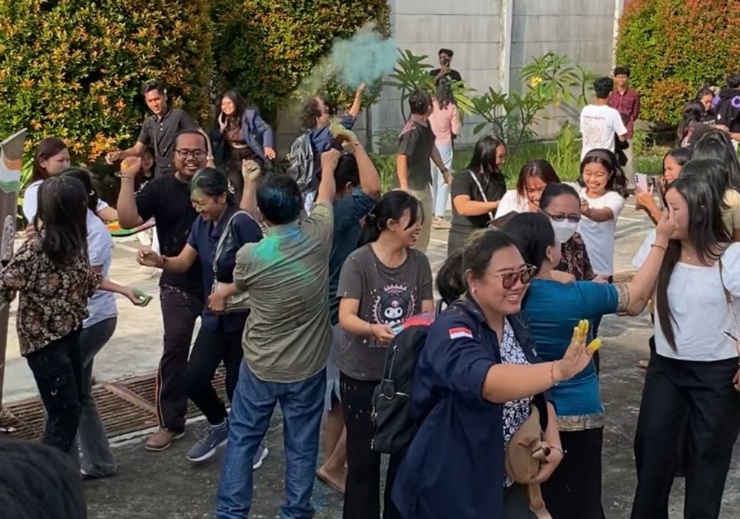 Sebelum perayaan dimulai, Mr. Naveen Meghwal memberikan penjelasan singkat mengenai makna filosofis dan tradisi Holi, sehingga peserta tidak hanya merasakan kemeriahannya tetapi juga memahami nilai yang terkandung di dalamnya.